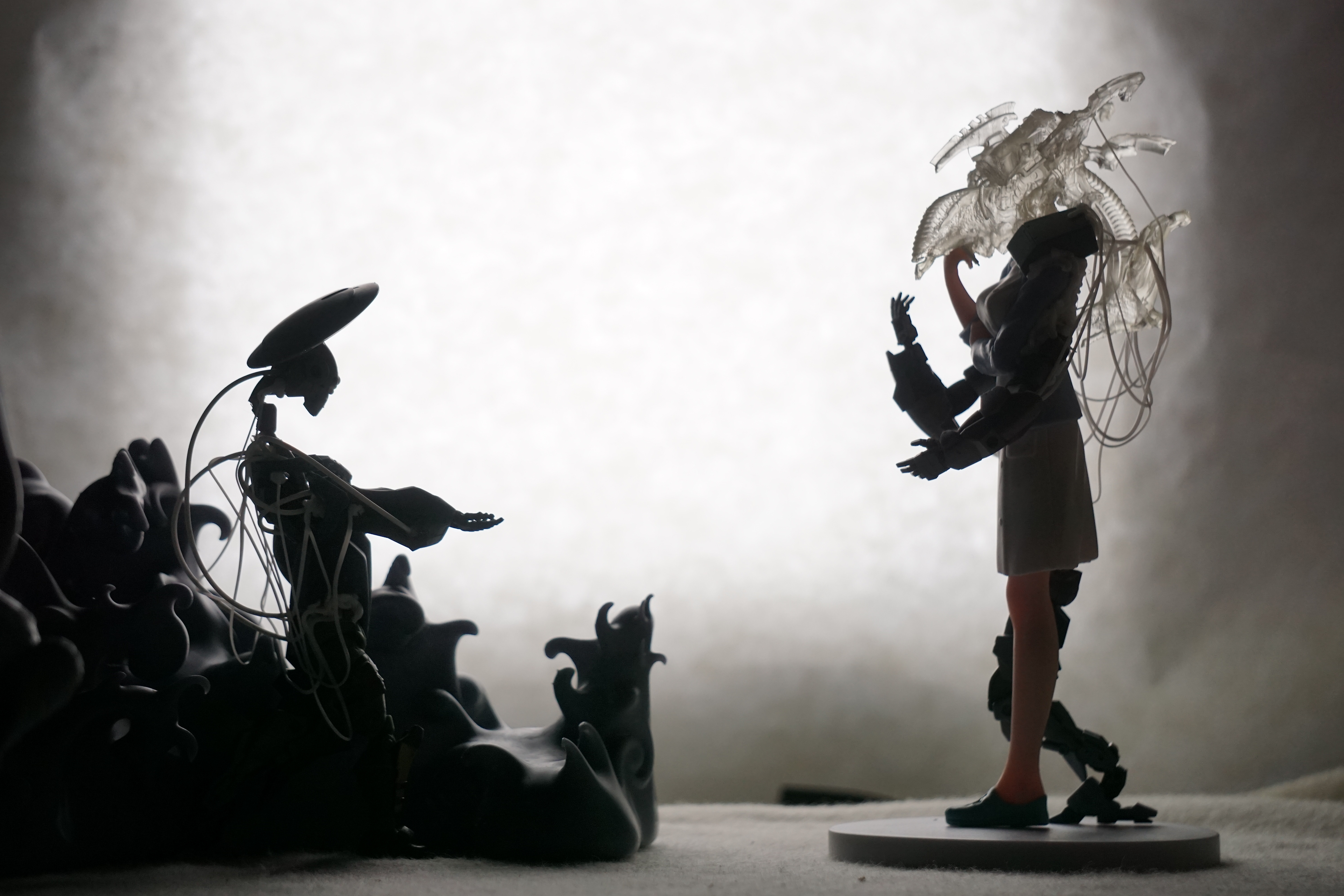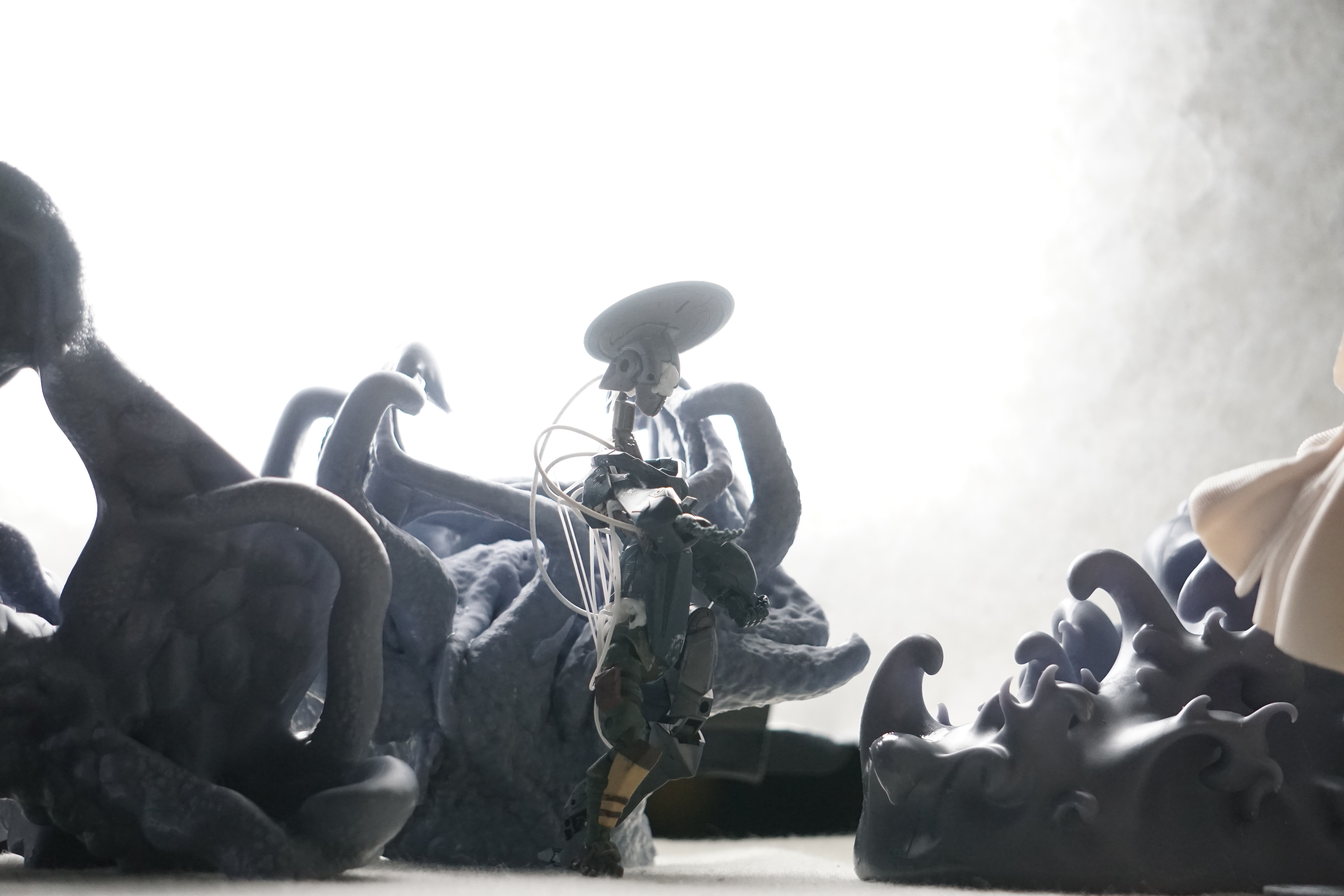 In an innovative nod to the principles of the Technoscene, this exhibition embraces the art of kitbashing, both digitally and physically, to illustrate the evolutionary process of adaptation and repurposing in the face of rapid technological and environmental change. Kitbashing, traditionally known in model-making, involves taking components from multiple sources and recombining them to create new, often unforeseen, outcomes. Here, it becomes a metaphor for the entropy and creativity inherent in human design and interaction with the world.