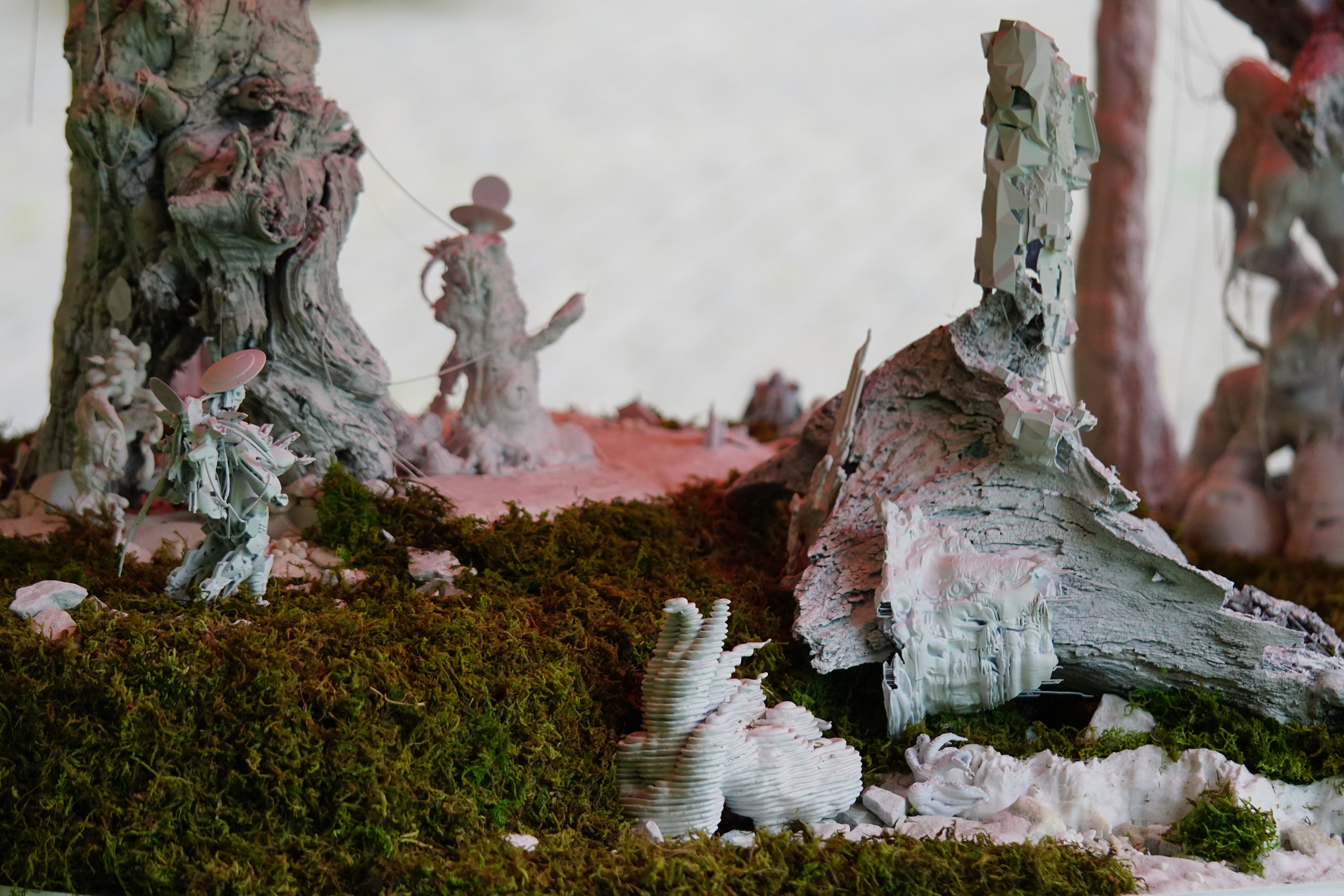 The exhibition features a series of 7 large tabletop dioramas showcasing different environments around the first forest and over 50 character inhabitants of Sorn-Lai, all interwoven in an intricate web of narrative and ecology.